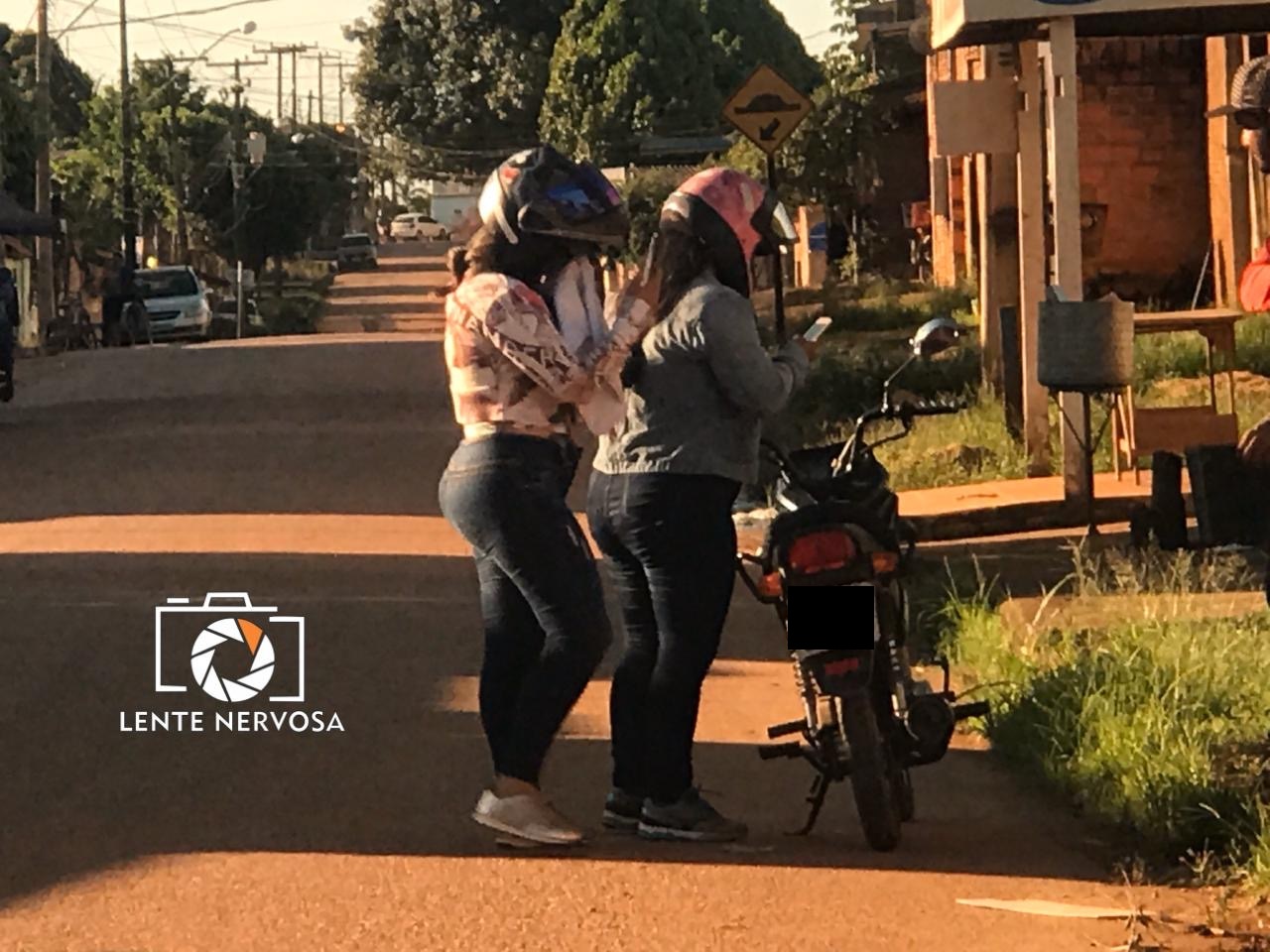 Duas mulheres seguiam pela via quando a linha chilena baixou e atingiu o rosto da mulher, que estava com a viseira do capacete aberta.