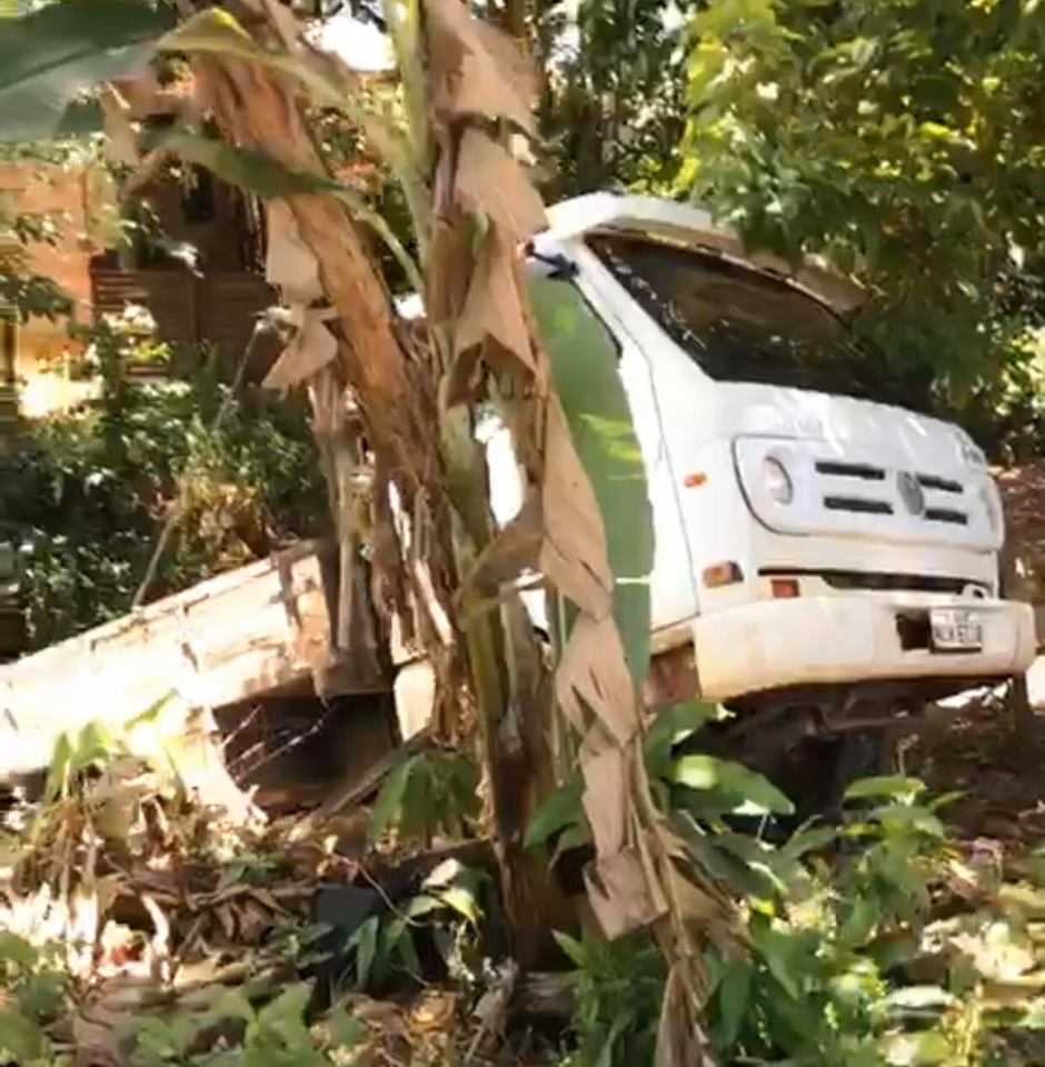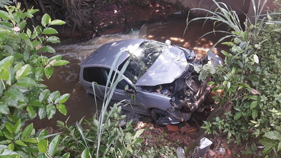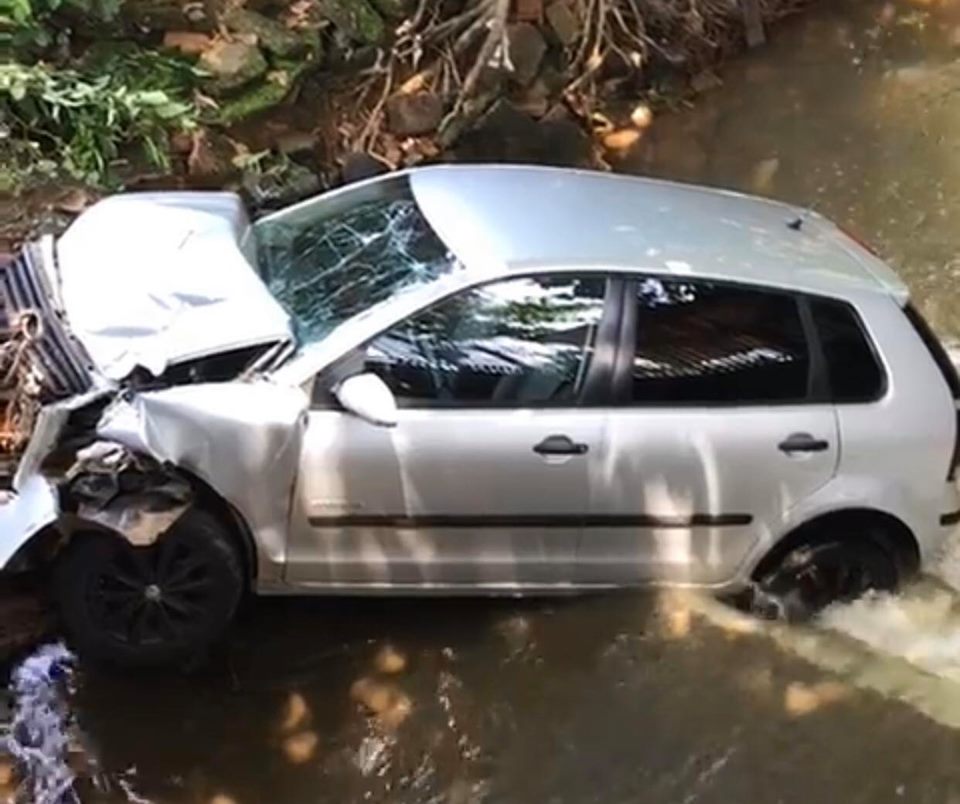 Informações são de que o motorista do caminhão subia a ladeira, quando de repente o veículo perdeu força e começou a voltar de marcha ré. O automóvel modelo Polo estava estacionado em frente a residência do proprietário e acabou sendo atingido pelo caminhão. Os dois automóveis caíram dentro de um córrego e um caminhão munck foi usado para retirar o veículo de passeio.