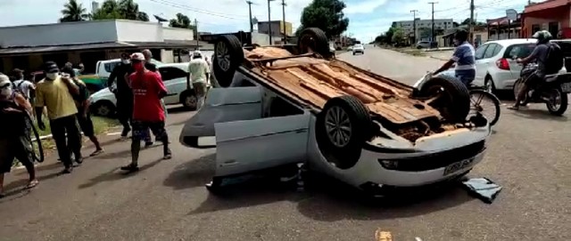 O acidente com capotamento aconteceu na tarde desta terça-feira (19) no cruzamento da Avenida Pinheiro Machado com Rua Buenos Aires, Bairro Embratel, em Porto Velho.
