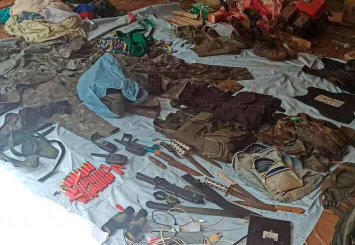 Foram encontrados na localidade munições de arma de fogo, armas brancas, coletes balísticos, binóculos, uniformes camuflados, vários veículos entre automóveis e motocicletas, rádios transceptores, bem como também estrutura de internet instalada com antenas parabólicas e placas de energia solar.