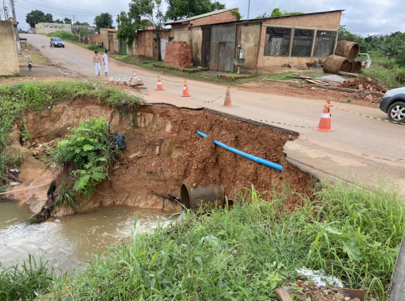 Com as constantes e fortes chuvas ocorridas nos últimos dias em Porto Velho, vários danos foram causados nos mais diversos ponto da cidade. Na Avenida Campos Sales, Bairro Novo Horizonte, zona sul da cidade, parte do asfalto cedeu e os cidadãos que por ali transitam estão em risco constante.