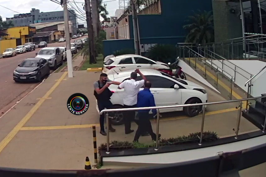 As câmeras de segurança registraram o momento em que o cliente caminha em direção à entrada da agência e é surpreendido por um criminoso que corre em sua direção armado com uma pistola. O outro assaltante dá apoio em uma motocicleta. Após se apossar dos malotes, o indivíduo sobe na garupa da moto e foge junto com o comparsa.