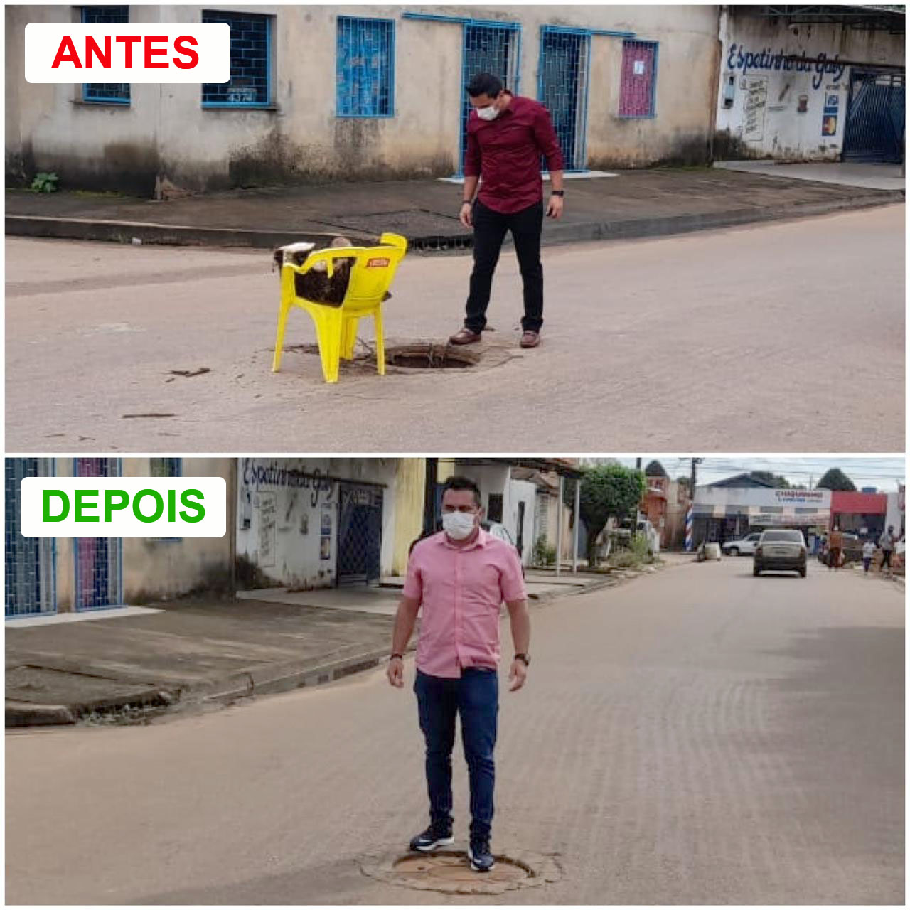 A falta de uma tampa de bueiro no cruzamento das vias citadas acima estava deixando a população correndo risco iminente de acidentes, principalmente aos ciclistas e motociclistas. Através do pedido de providência realizado pelo gabinete do vereador Edmilson Dourado, a secretaria competente realizou a instalação da tampa de bueiro, garantindo mais segurança no tráfego de veículos.
