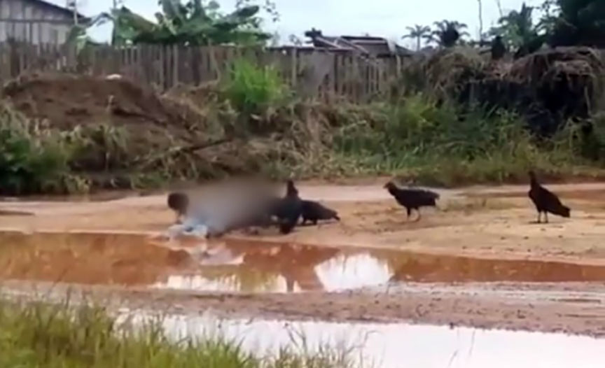 Guatá, MT – Cleiton Oliveira Silva foi executado a tiros na última quarta-feira (17), no Distrito de Guatá, no Mato Grosso, porém, o que chama a atenção é o fato de o cadáver do homem ter sido parcialmente devorado por urubus. Um morador da região registrou em vídeo o ataque das aves.