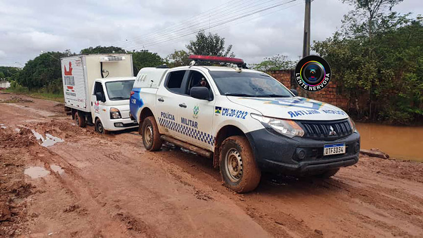 Uma guarnição da Polícia Militar prestou atendimento pra trabalhadores na manhã deste sábado (20), que estavam com o veículo de trabalho atolado na Rua Pirarara com Rua Dourado, Bairro Lagoa, zona leste de Porto Velho. Os policiais Sargento PM Renato Melo (comandante), Cabo PM Canterle (motorista) e Cabo PM Andrade (patrulheiro) participaram da ação.