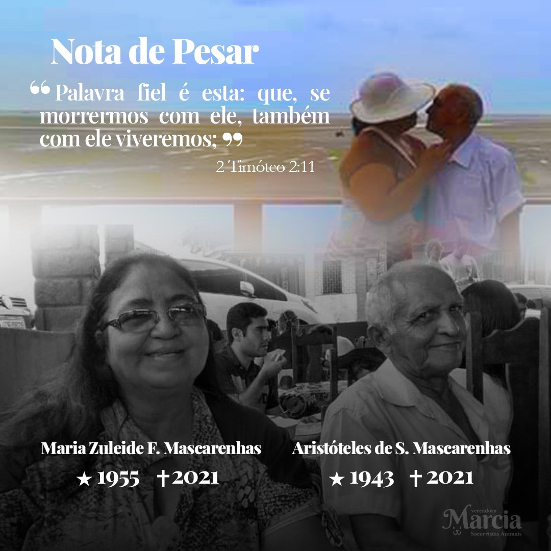 É com profundo pesar que a vereadora Márcia Socorristas Animais (Progressistas) lamenta a morte dos amigos e irmãos em Cristo, o Presbítero Aristóteles e sua esposa Zuleide vítimas de Covid-19.
