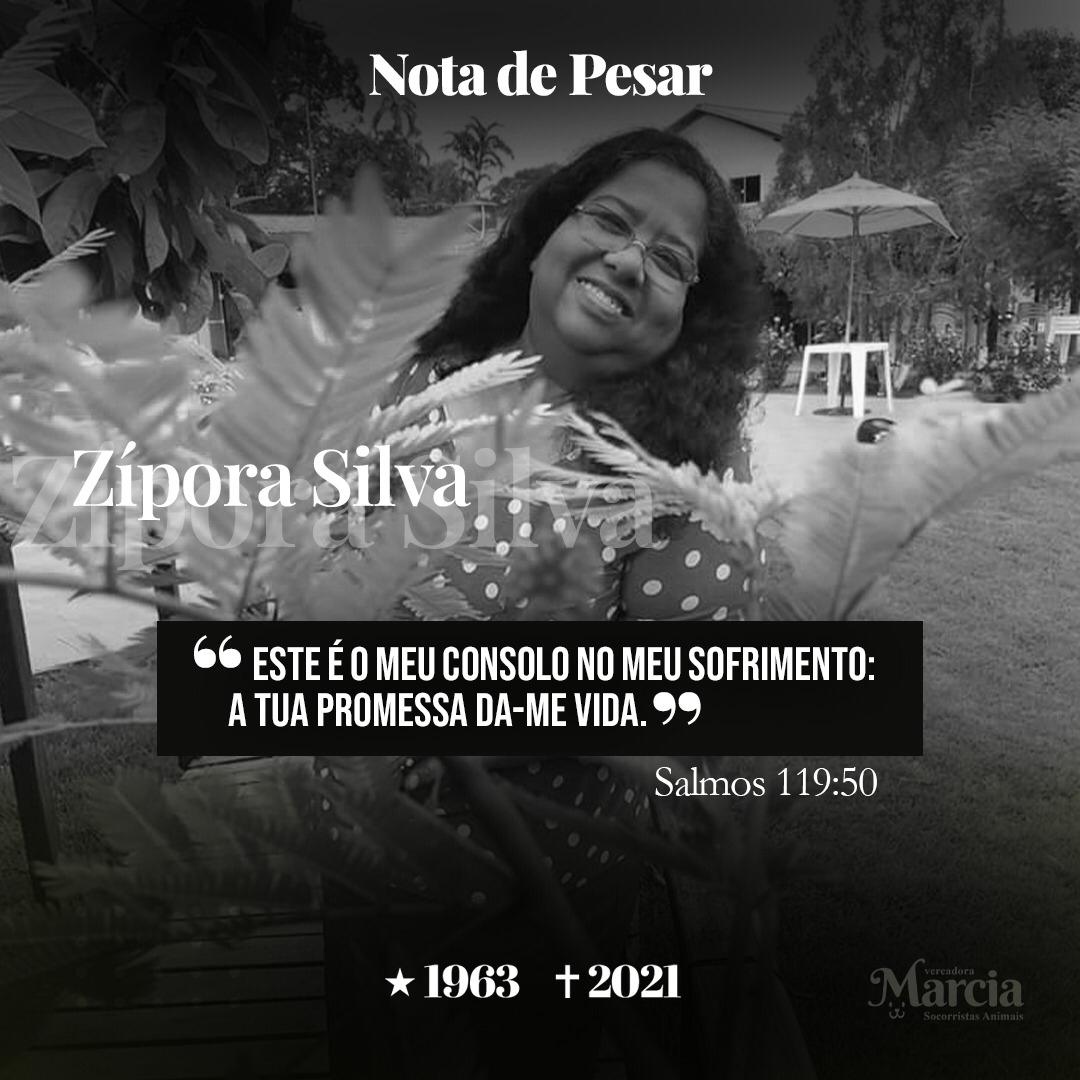 Com imensurável tristeza, que a vereadora Márcia Socorristas Animais (Progressistas), recebeu a notícia do falecimento da querida amiga e irmã em Cristo Zípora Silva, esposa do Supervisor da Igreja Evangélica Assembleia de Deus, pastor Ráurie Raimundo, vítima da Covid-19.