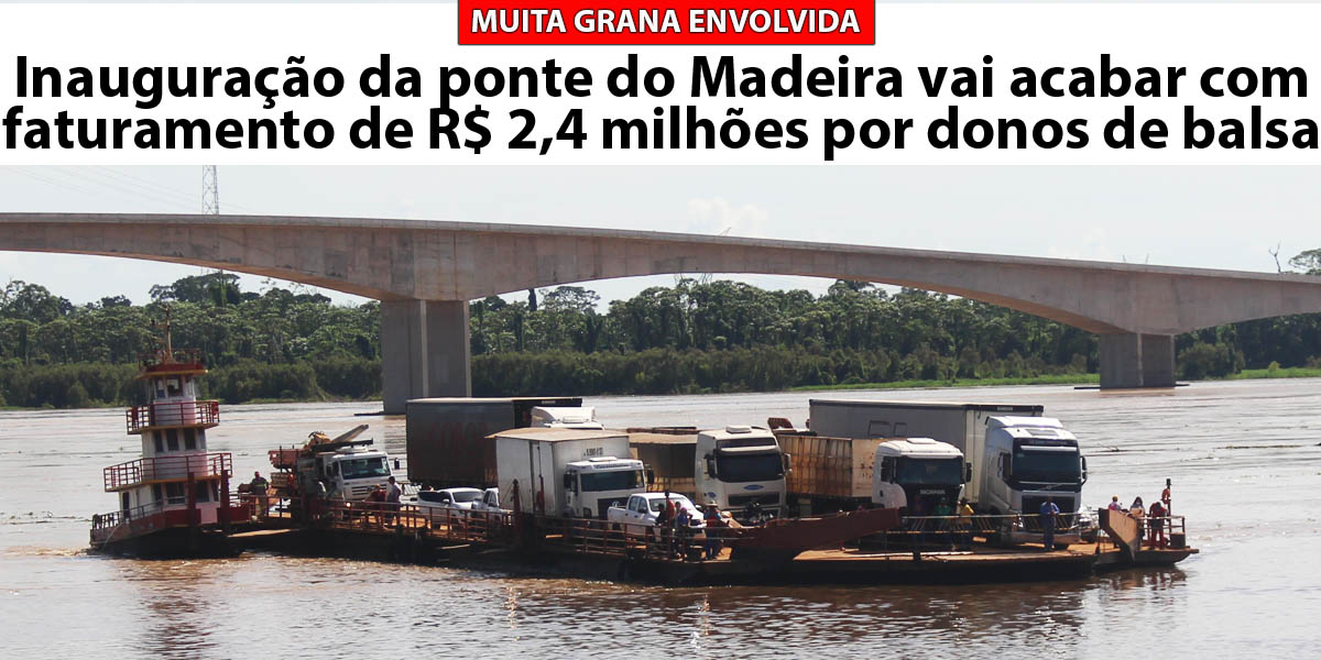 A tão esperada inauguração da ponte sobre o Rio Madeira, no distrito do Abunã, em Rondônia, vai facilitar a vida de milhares de pessoas que percorrem a BR-364, mas representa para um grupo, os donos da balsa, o prejuízo de cerca de R$ 2,4 milhões de reais mensais.