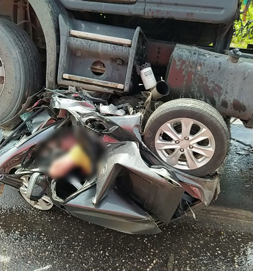 Conforme informações, uma carreta passou pela lombada e o automóvel modelo Honda Fit que seguia logo atrás reduziu para passar pela lombada, momento em que foi atingido por uma carreta que estava carregada com cimento e transitava em alta velocidade, não conseguindo evitar a colisão. Com o forte impacto, o automóvel Fit foi parar embaixo da carreta e acabou sendo arrastado por alguns metros.