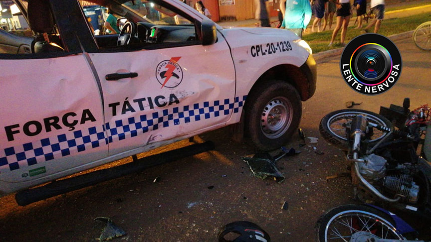 Transitando em alta velocidade, o piloto acabou colidindo violentamente com a lateral de uma caminhonete L200 da Polícia Militar, o que resultou em graves ferimentos tanto no piloto quando no ocupante da garupa da moto. Os policiais revistaram os suspeitos e nada de ilícito foi encontrado.