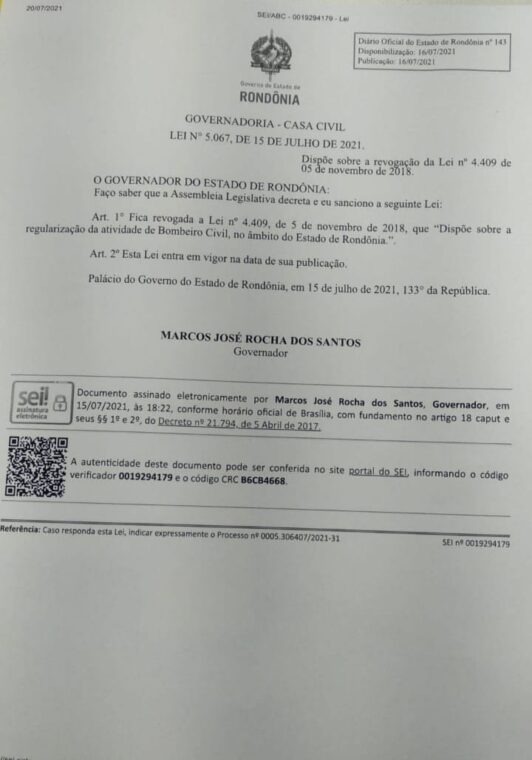 Várias empresas utilizam da mão de obra de Bombeiro Civil como parte de seus funcionários, a exemplo do Porto Velho Shopping, Defesa Civil da Prefeitura de Porto Velho, casa de show com grandes públicos, Governo de Rondônia entre outros. Com a extinção da Lei, que foi sancionada pelo Governador Marcos Rocha, no dia 15 de julho de 2021, todos terão que deixar seus empregos, uma vez que a profissão deixa de existir em Rondônia.