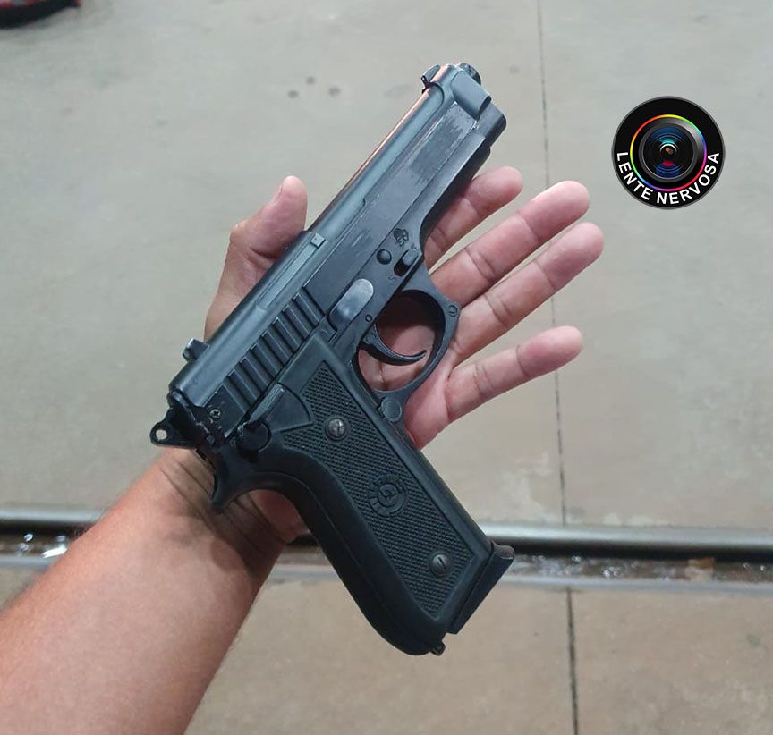 Os criminosos estavam em posse de uma pistola de brinquedo, além da moto que possui registro de roubo/furto. Ambos foram encaminhados para a central de polícia e ficaram à disposição da justiça.