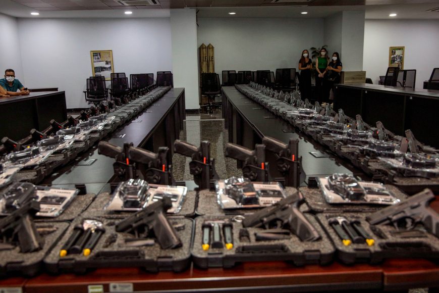 A fim de cumprir com eficiência as missões constitucionais e garantir a segurança de policiais penais do Sistema Penitenciário do Estado, o Governo de Rondônia entregou na terça-feira (30) para a Secretaria de Estado da Justiça (Sejus), 852 pistolas calibre nove milímetros semiautomática, para os profissionais que trabalham com escoltas, capturas, fiscalizações de apenados, e segurança nas unidades prisionais do Estado.