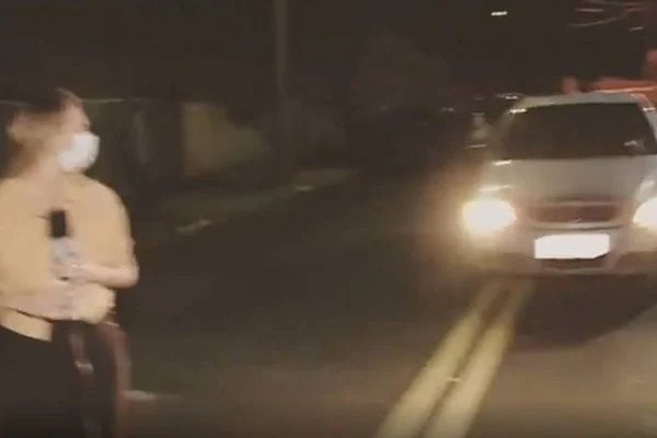 Em vídeo publicado nas redes sociais, a repórter Juliana Giachini mostrou o momento em que o suspeito jogou o carro em cima dela e do cinegrafista Leandro Marques, que foi atropelado.