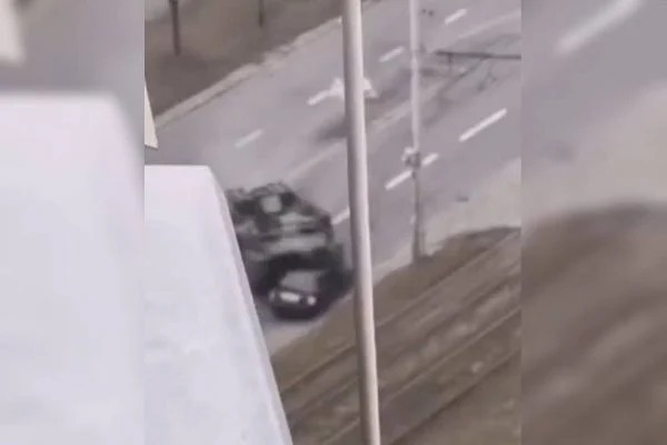 Moradores de Kiev, na Ucrânia, registraram o momento em que um tanque de guerra supostamente russo passa por cima de um carro com civis. O episódio ocorreu em área residencial da capital ucraniana.