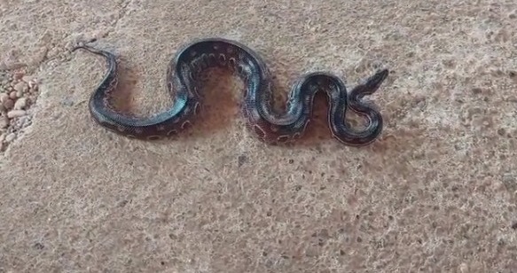 A serpente foi capturada no bairro Barão de Melgaço III. Moradores já havia tentado pegá-la, mas a cobra sempre conseguia escapar. Com a ação do Corpo de Bombeiros, ela foi apanhada no meio da rua.