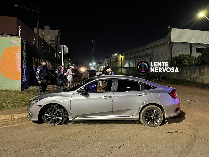 Durante a fuga, um dos ocupantes do Civic efetuou um tiro contra a guarnição da PM. Os policiais revidaram e também atiraram, acertando os pneus lado esquerdo do veículo. O motorista continuou fugindo, colocando a vida de inocentes, que transitavam pelas ruas, em risco.