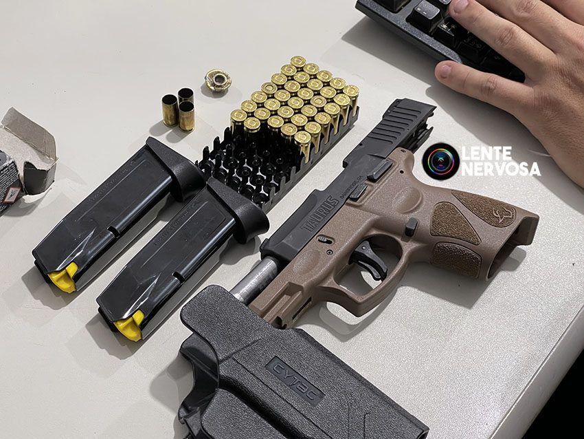 O homem foi até seu carro e pegou a pistola Taurus G2C e também efetuou alguns disparos. A Polícia Militar foi acionada e em frente ao bar foram encontrados três estojos de munição calibre 9mm além de um projétil.
