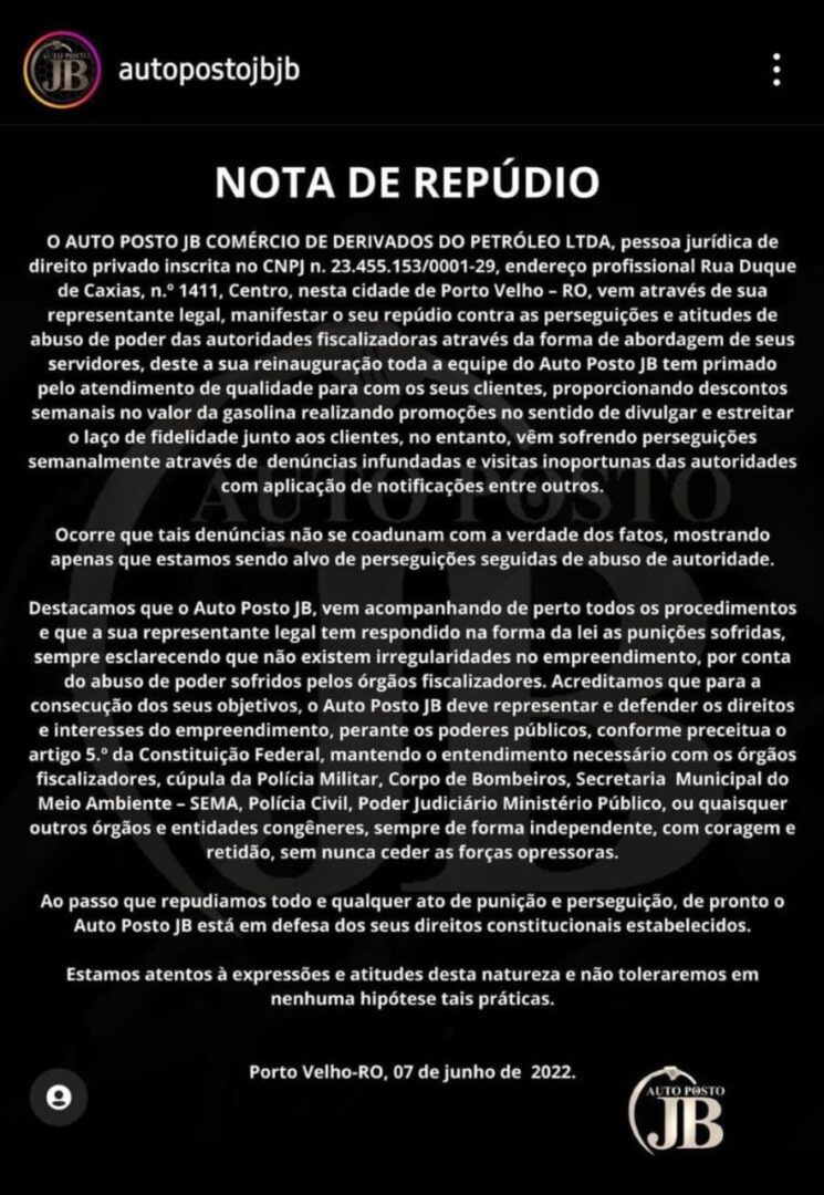 Os motoristas afirmavam que um major do Corpo de Bombeiros é dono de um posto de combustíveis e que devido ao Auto Posto JB oferecer gasolina e diesel com valor mais em conta, ocorrem as fiscalizações sem fundamento.