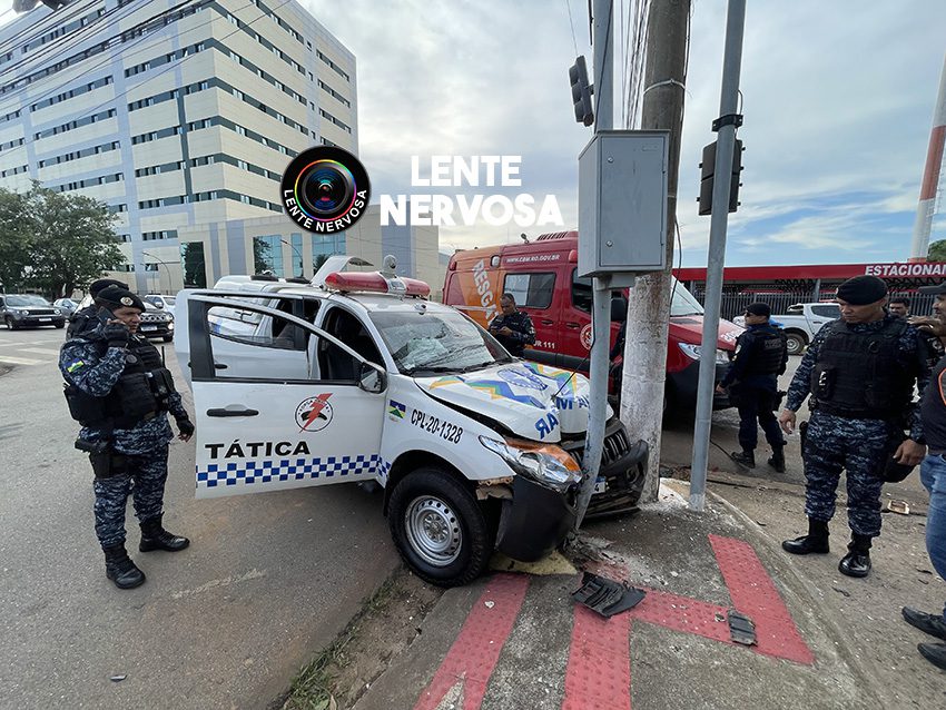 Policiais militares da Força Tática do 1º Batalhão seguiam pela Avenida Pinheiro Machado para atender ocorrência de um homem que estava detido por populares na Rua João Goulart próximo da Avenida Abunã. No cruzamento com a Rua Gonçalves Dias, houve a colisão transversal com a caminhonete Fiat Toro.