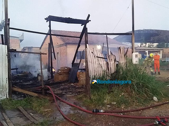 Uma residência, localizada na rua Piapara com Pirarara, bairro Lagoa, na zona leste de Porto Velho, foi destruída pelo fogo, na manhã desta quinta-feira (28).