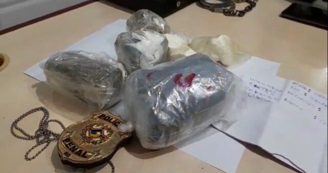Rondas foram realizadas, mas os responsáveis por jogar a droga não foram localizados. O apenado foi encaminhado para o Departamento de Flagrantes.