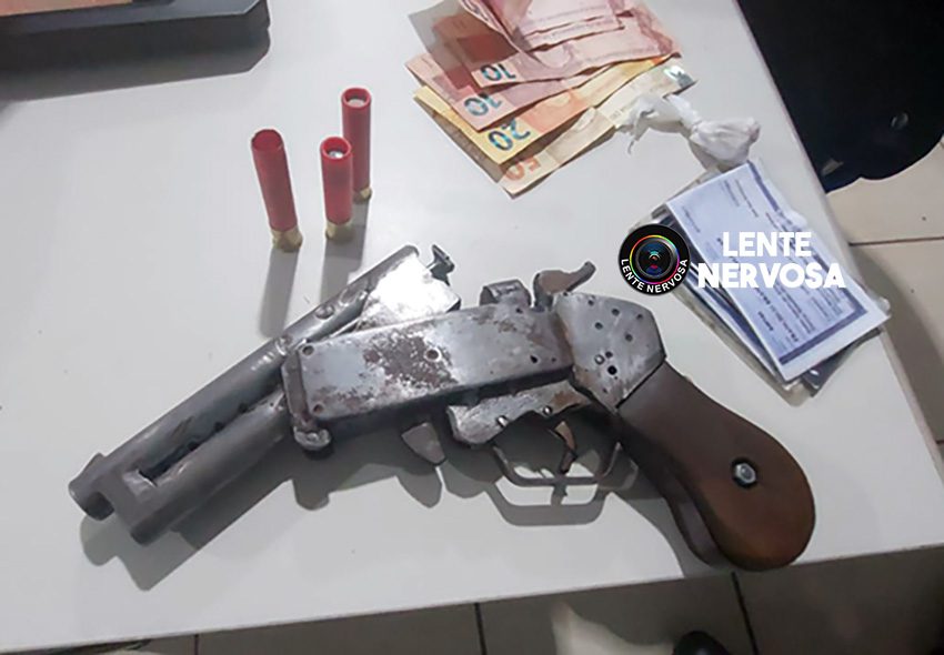 Ao avistar os policiais, o suspeito tentou fugir, mas logo foi detido. Com ele os policiais encontraram uma arma de fabricação caseira calibre 36. Francisco informou que estava ingerindo bebidas alcoólicas e Vanio havia ido lhe perturbar.