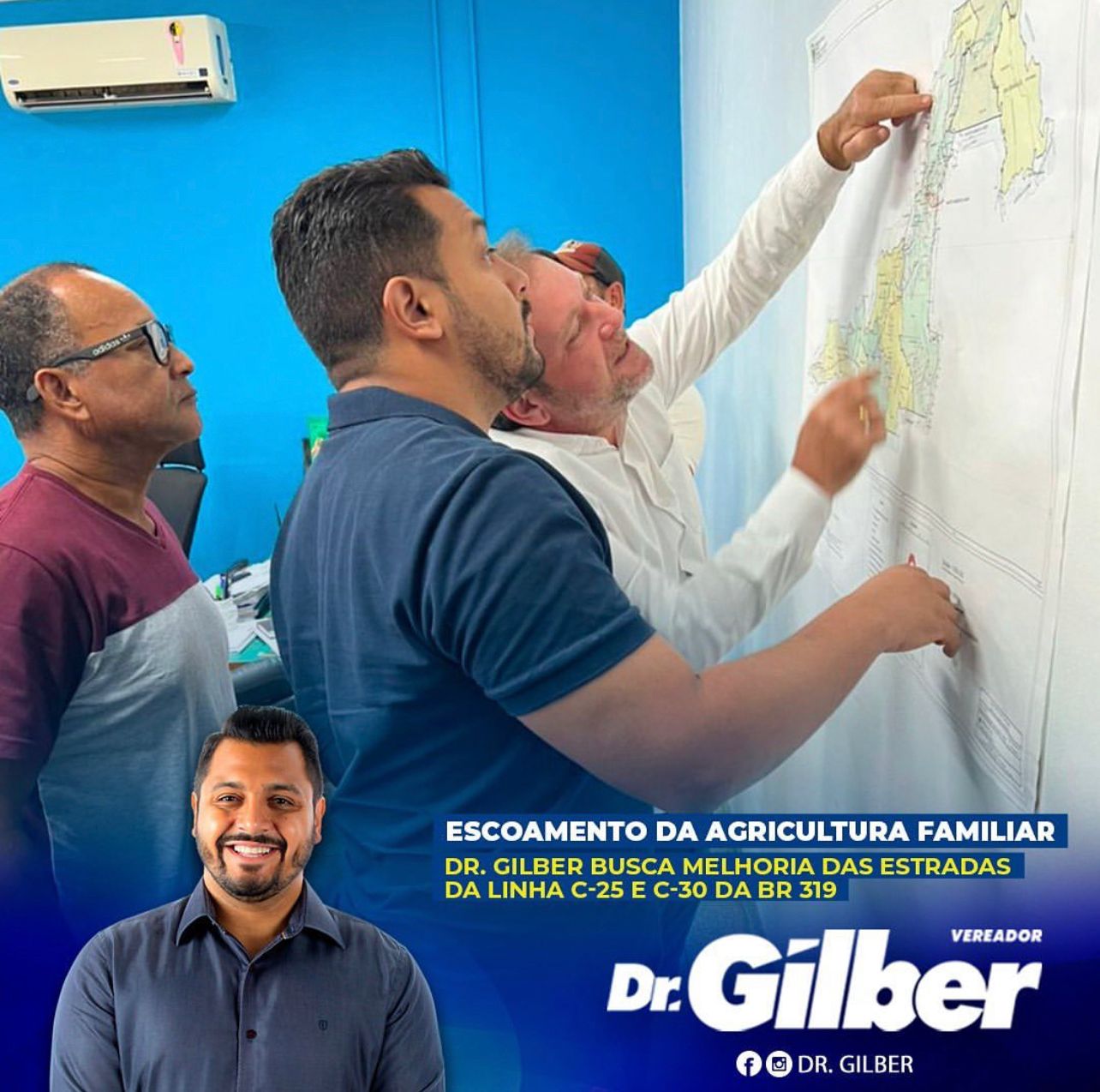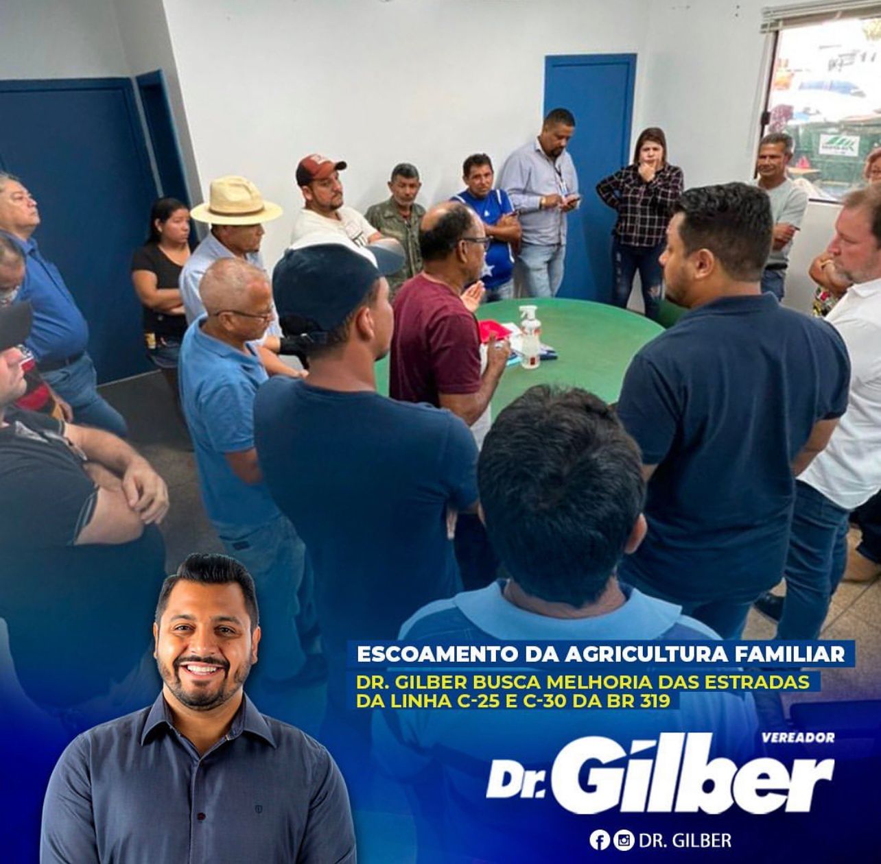 Na última segunda-feira (17), o vereador Dr. Gilber Mercês (Podemos), participou de reunião na Secretaria Municipal de Agricultura – SEMAGRIC com o secretário Gustavo Serbino e moradores das Linhas C-25 e C-30 da BR-319 para tratar sobre a melhoria das estradas vicinais que cortam a região.