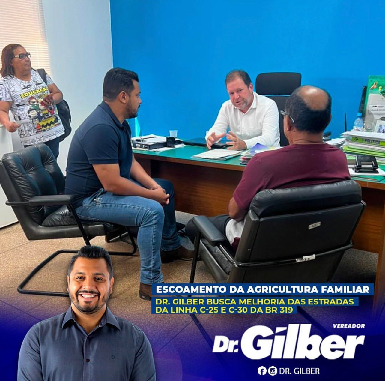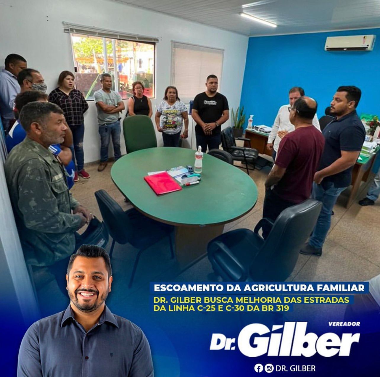 Na última segunda-feira (17), o vereador Dr. Gilber Mercês (Podemos), participou de reunião na Secretaria Municipal de Agricultura – SEMAGRIC com o secretário Gustavo Serbino e moradores das Linhas C-25 e C-30 da BR-319 para tratar sobre a melhoria das estradas vicinais que cortam a região.