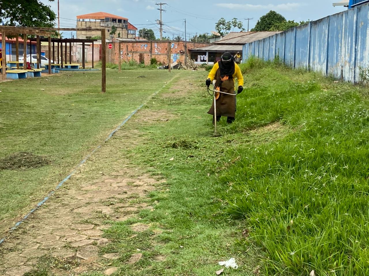 Foram realizados os serviços de roço, raspagem, rastelagem, carpina, varrição e por último o recolhimento dos resíduos acumulados. Também já foi solicitado junto à Secretaria Municipal de Meio Ambiente (Sema), via pedido de providências, para que seja realizada toda a revitalização da Praça e a Secretaria já está realizando a reforma do pergolado do local.