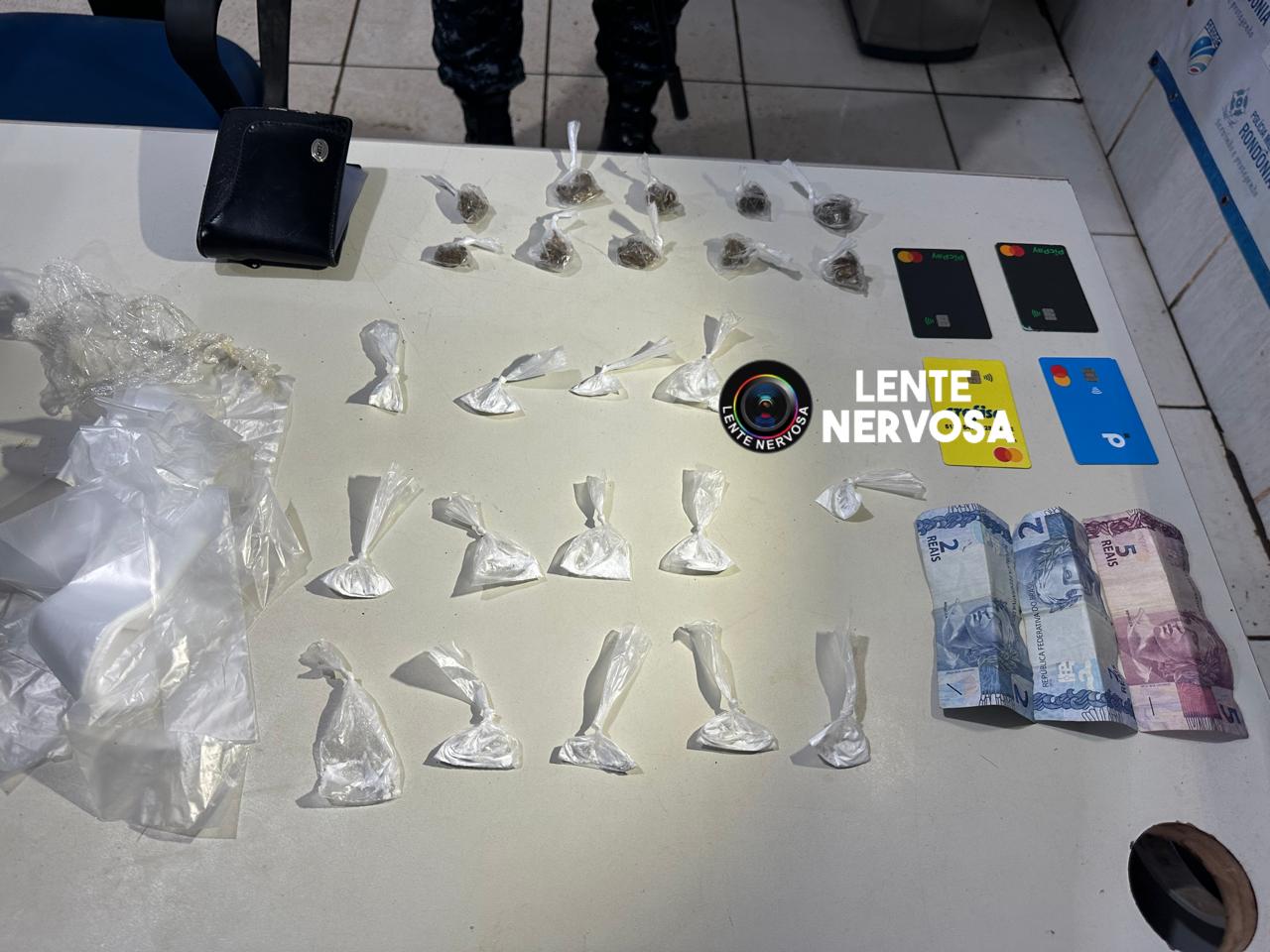 Uma guarnição da Força Tática da Polícia Militar, prendeu um homem de 21 anos, que foi flagrado com várias porções de drogas, entre maconha e cocaína. A prisão do indivíduo aconteceu na Rua Joaquim Nabuco, Bairro Tucumanzal, em Porto Velho.
