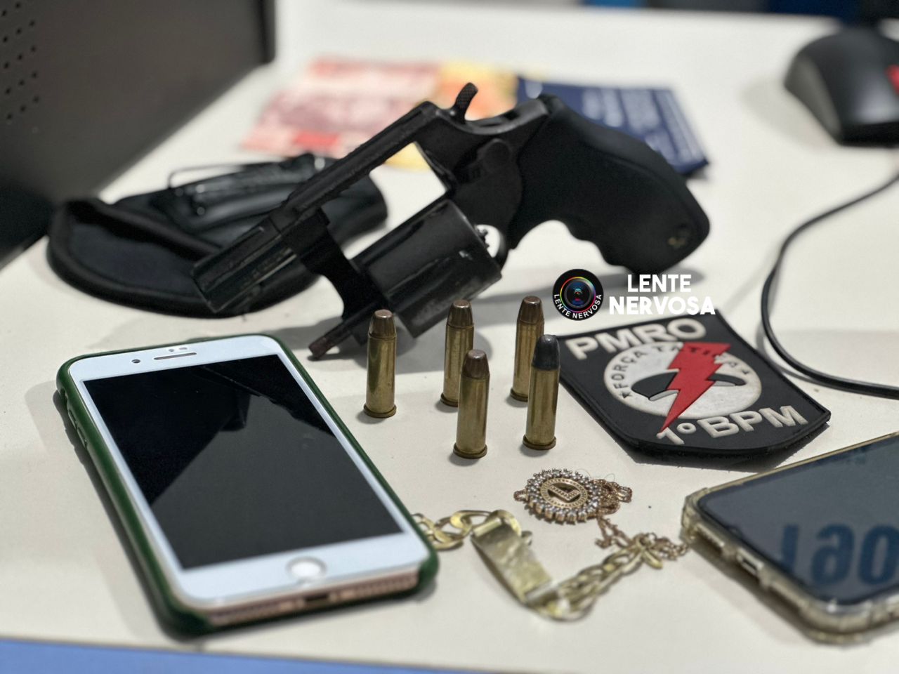 Uma equipe da Força Tática do 1º Batalhão realizou a prisão de um casal que foi flagrado em posse de arma de fogo em um posto de combustíveis na Avenida dos Imigrantes, Bairro Industrial, zona leste de Porto Velho.