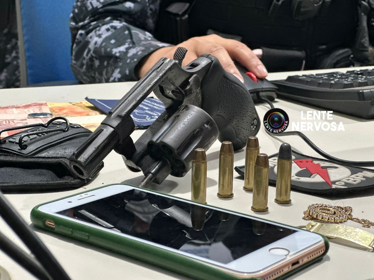 Foi realizada abordagem ao motociclista e encontrado em sua cintura, um revólver calibre 38 com cinco munições intactas. Para a nossa reportagem, o suspeito informou que já sofreu tentativa de assalto e que por isso havia comprado o armamento para se defender.