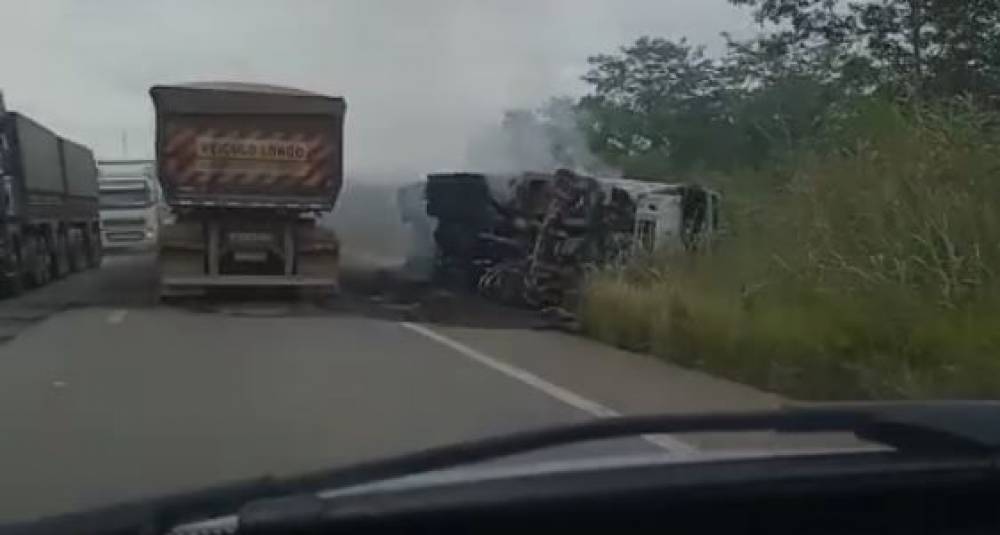 De acordo com o autor da filmagem, que também registrou um grande congestionamento na rodovia federal, o acidente envolvendo a carreta bitrem que seguia em direção a Porto Velho, e um caminhão-tanque que trafegava em sentido contrário, aconteceu na noite de ontem, próximo do distrito do Guaporé, a 90 km de Vilhena.
