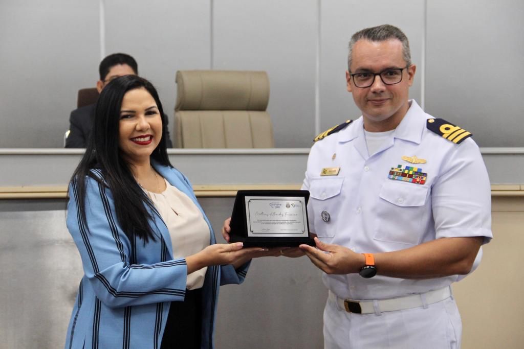 Cristiane Lopes, que contou com a presença do Comandante da Capitania Fluvial de Porto Velho, Capitão de Fragata, Matheus de Athaydes Firmino, do diretor geral da Escola do Legislativo Alexandre Silva e Tiago Tezzari, ex-diretor da Escola.