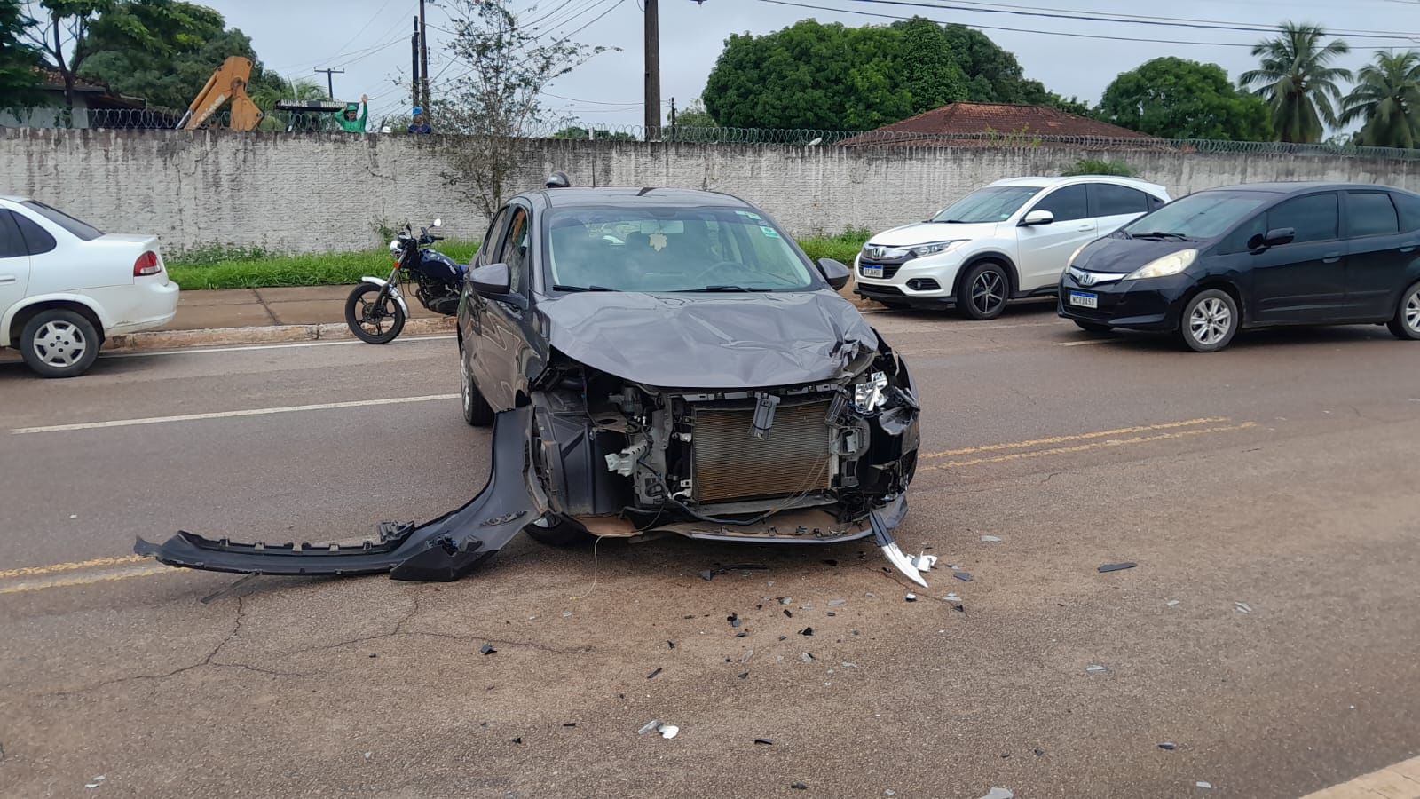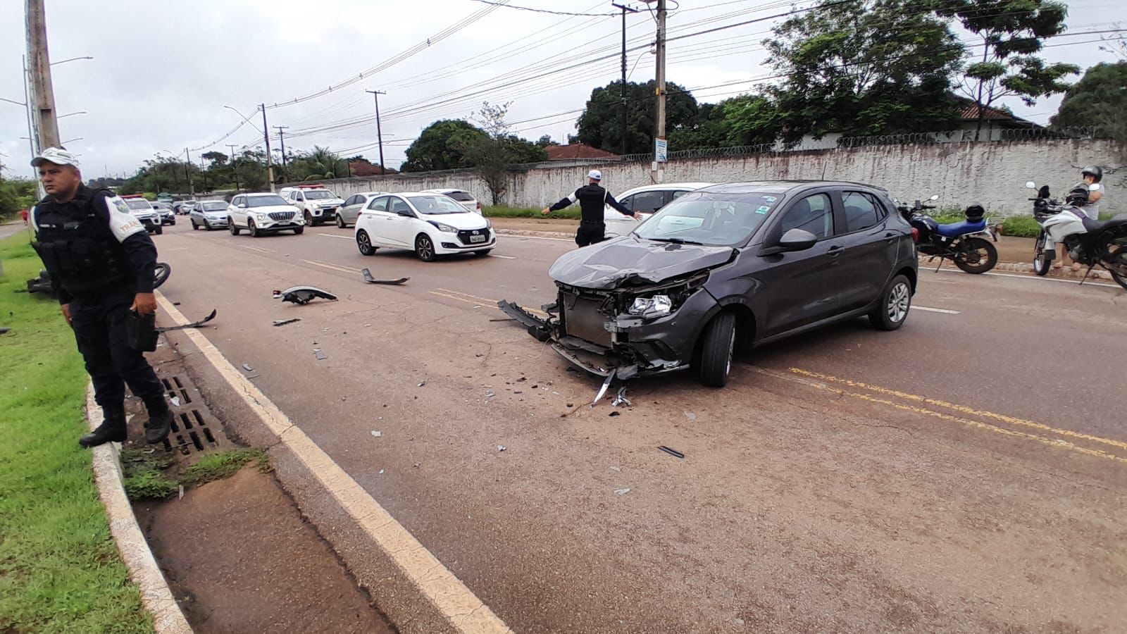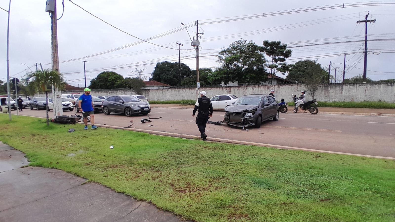 Após o primeiro impacto, o motociclista acabou colidindo em um poste de iluminação pública de concreto, sofrendo gravíssimos ferimentos. Destroços de ambos os veículos ficaram espalhados pela via e alguns populares que presenciaram o acidente acionaram a Polícia Militar e a equipe de resgate.