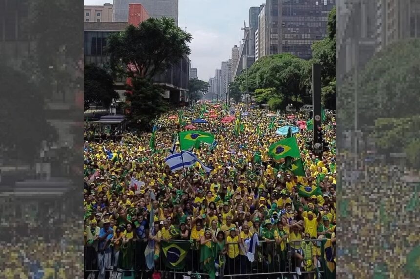 A reportagem do Metrópoles observou a presença de público ao longo de 10 quadras da Avenida Paulista, com concentração maior em 4 quarteirões.