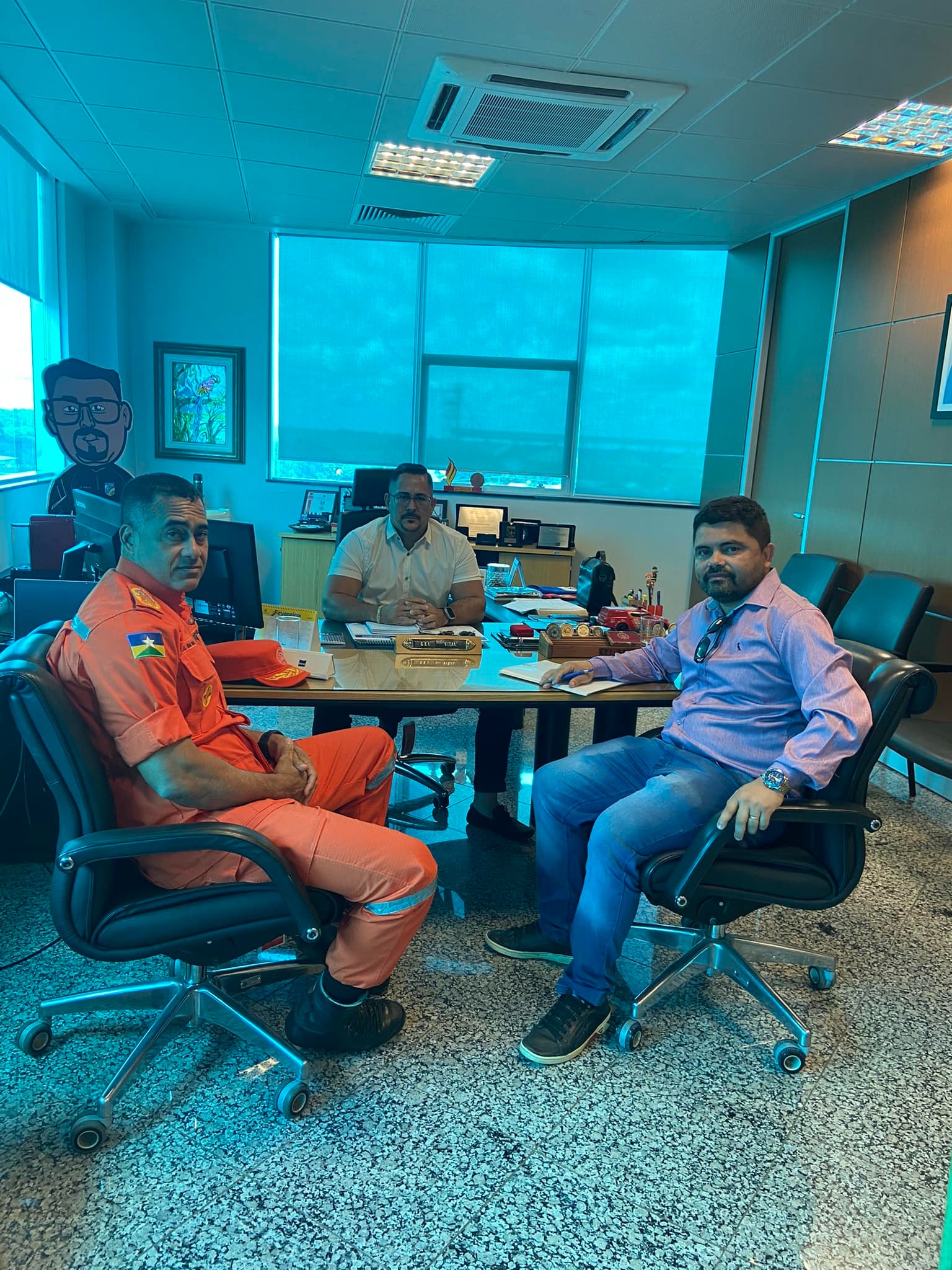 O presidente da Associação dos Familiares e Praças da Polícia e Bombeiro Militar do Estado de Rondônia (Assfapom), Jesuino Boabaid, esteve participando de reunião com Secretário de Segurança Pública, Coronel BM Vital, Comandante do Bombeiro, Coronel BM Nivaldo e o Coronel PM, Henrique assessor especial da SESDEC para cobrar o andamento da pautas do que foi acordado nas reuniões, tanto no interior, quanto na capital.