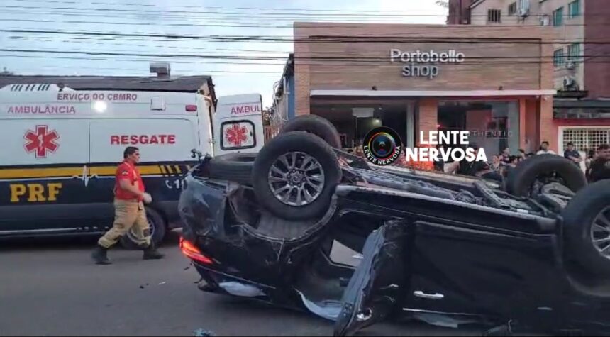 Um gravíssimo acidente de trânsito ocorrido no final da tarde desta quarta-feira (01) resultou em uma caminhonete modelo Hilux Sw4 capotada na Avenida Abunã com a Rua Getúlio Vargas. O sinistro ocorreu após a condutora de um automóvel invadir a via preferencial.