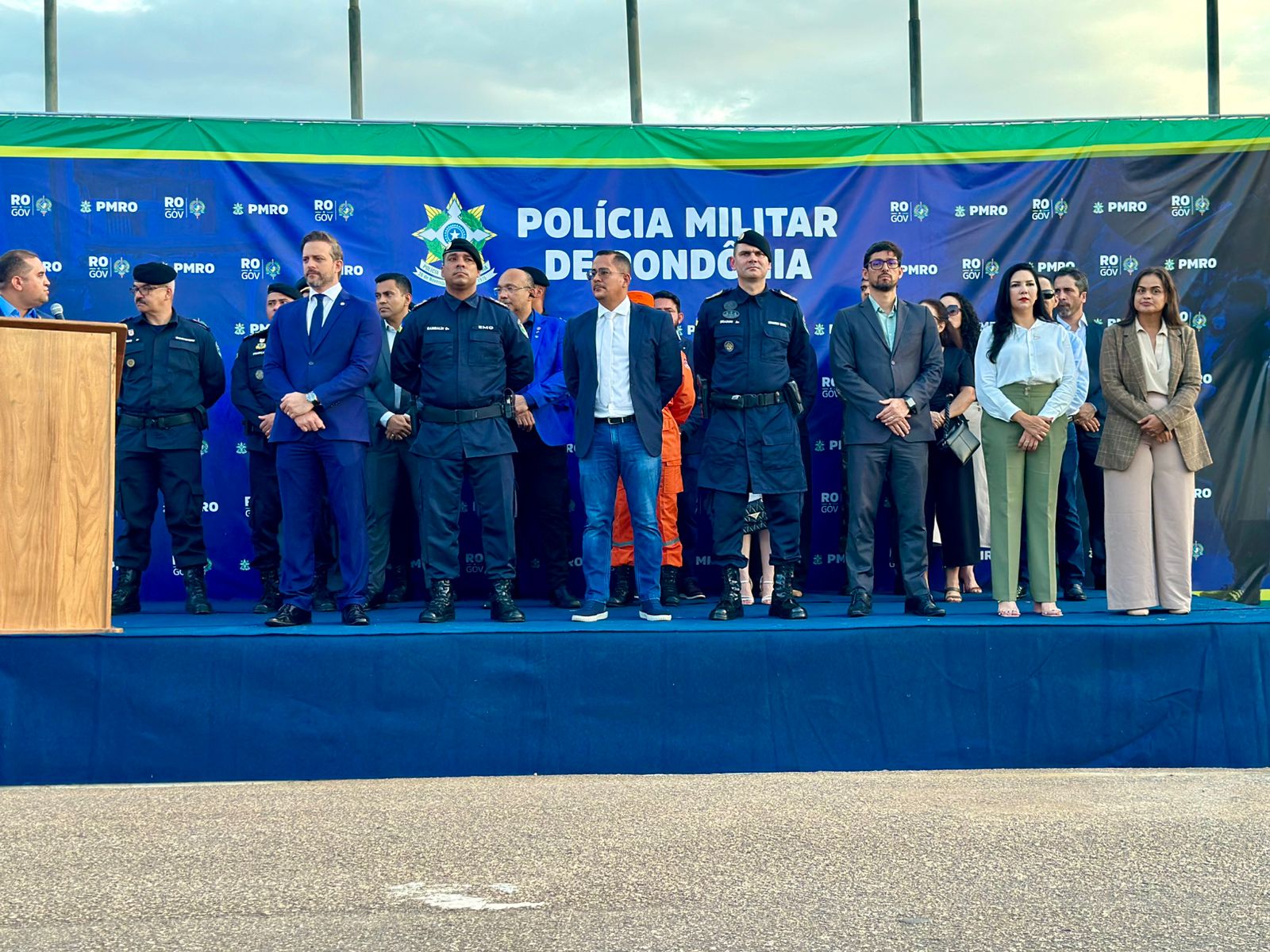 “Hoje é um dia especial para homenagear e reconhecer o trabalho dos homens e mulheres da nossa Polícia Militar. Cada recurso que destinamos é um investimento na segurança e na qualidade de vida das famílias rondonienses. Com a aquisição de novos equipamentos e tecnologias, como os Totens de segurança, contribuímos para um policiamento mais ágil e eficaz, especialmente em regiões estratégicas como Ponta do Abunã”, comentou.