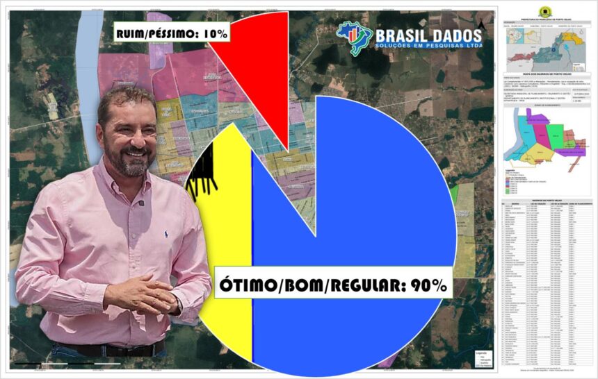 Pesquisa divulgada nesta segunda-feira (30), pelo Instituto Brasil Dados, mostra que o prefeito Hildon Chaves está cumprindo seu segundo e último mandato com uma aprovação de 90% dos cidadãos porto-velhenses.