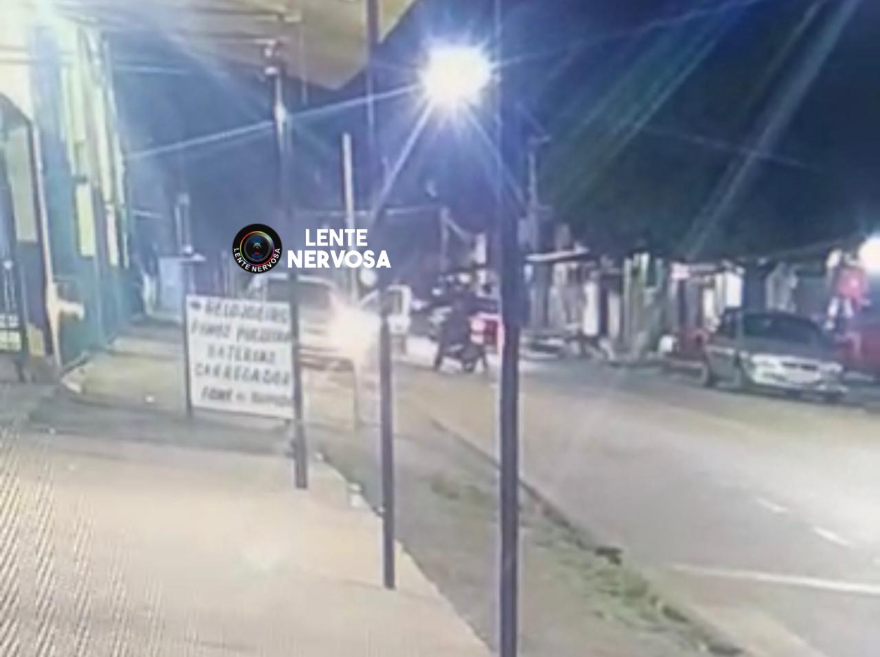 Nas imagens é possível observar o carro em movimento, quando dois homens em uma motocicleta passam ao lado e o que está na garupa atira várias vezes.