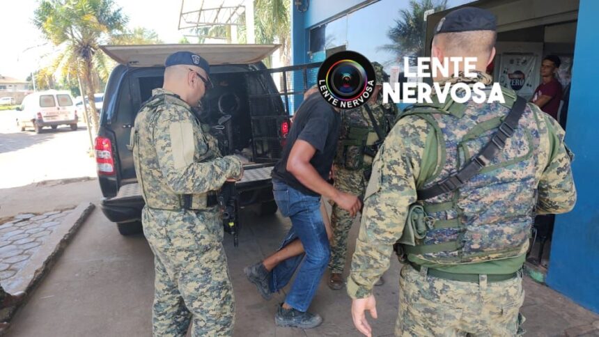 O infrator não obedeceu a ordem de parada dos policiais e empreendeu fuga, passando por semáforos vermelhos, mas logo foi abordado pela guarnição.