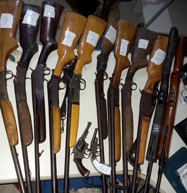 A ação dos policiais resultou na apreensão de um arsenal e várias munições, além de peças utilizadas para montar os armamentos.