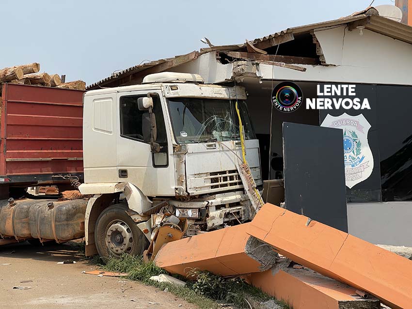 O forte impacto derrubou pilares de concreto e destruiu boa parte da guarita.