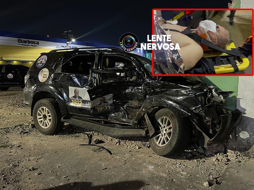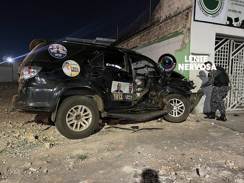 A viatura da PM atingiu o automóvel e acabou colidindo posteriormente com um pilar de concreto do Mercado Central.