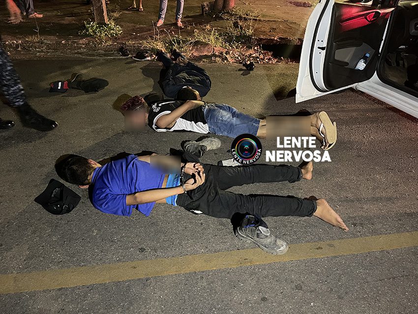 Foram dadas ordens de parada, mas o motorista continuou a empreender fuga. Alguns dos criminosos chegaram a trocar tiros com os policiais militares.