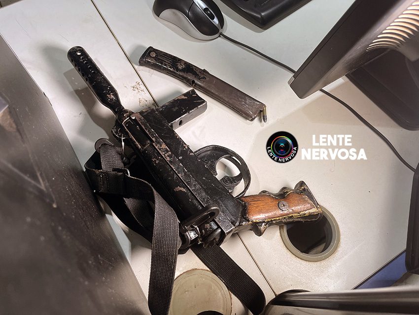 Ele estava com uma mochila, e dentro dela foi encontrara uma pistola calibre 9mm com várias munições intactas. Foram encontradas também, algumas porções de droga.