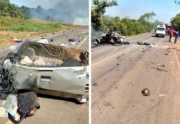 O acidente aconteceu por volta das 13 horas entres as cidades de Comodoro e Campos de Júlio. Uma sexta pessoa, condutor de uma das carretas, ficou ferido.
