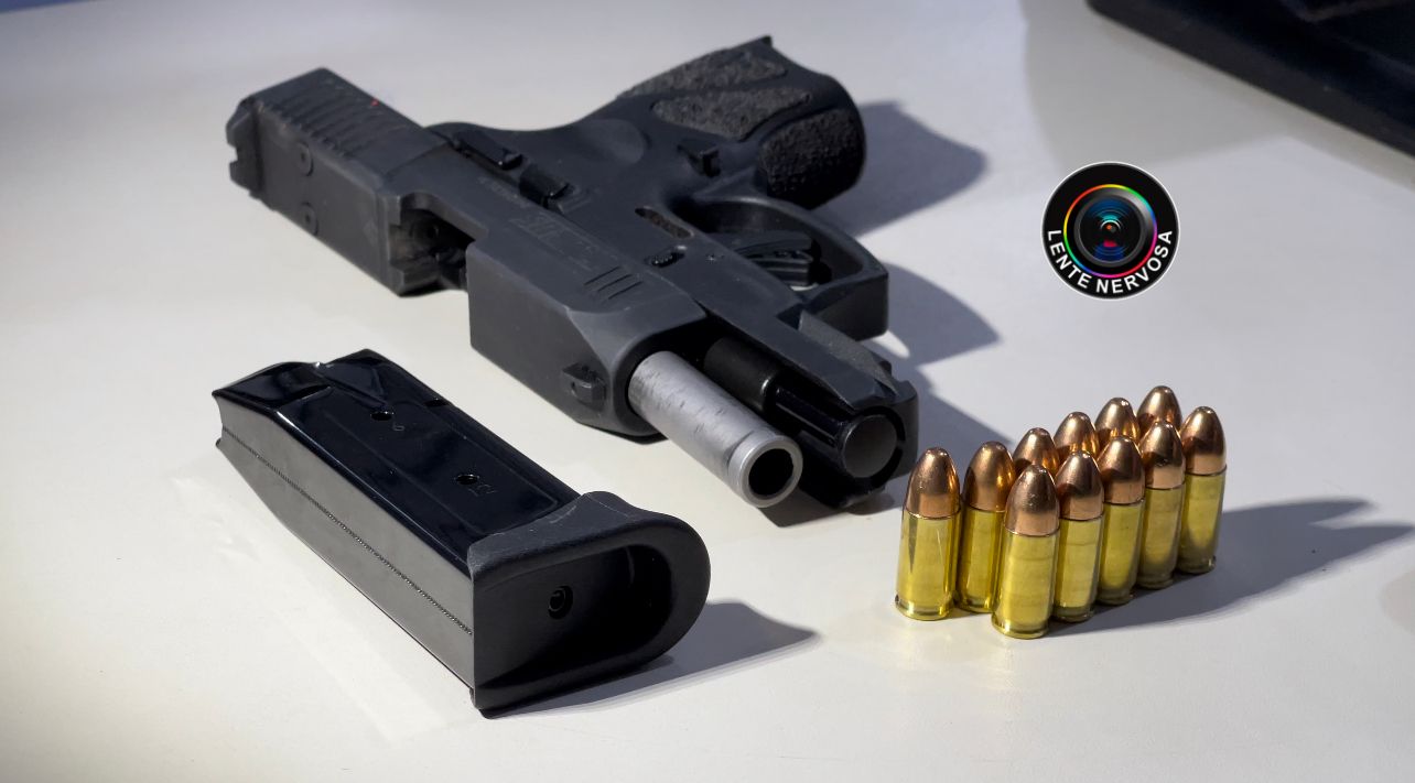 Dentro do carro estava um casal. Em revista pessoal nada de irregular foi encontrado, porém, dentro da bolsa da mulher estava uma arma de fogo.